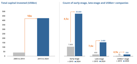 European Tech is compounding far faster than we think. In 10 years, investment levels have expanded by 10x, and the number of tech companies in each stage has also grown.